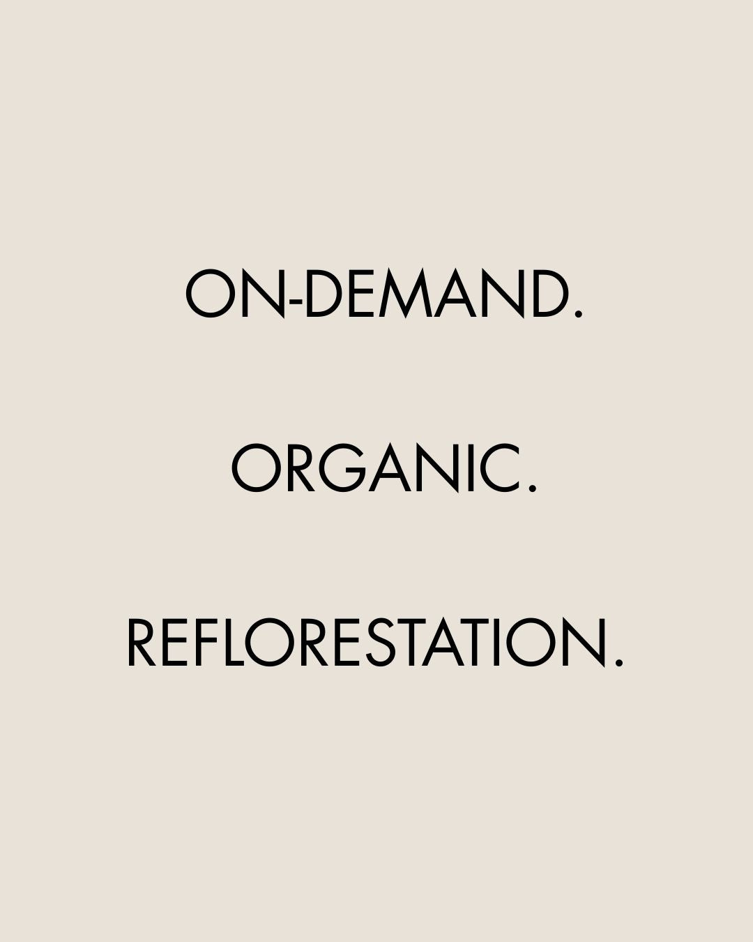 Slow impact. Honest materials. On-demand production to avoid overstock.